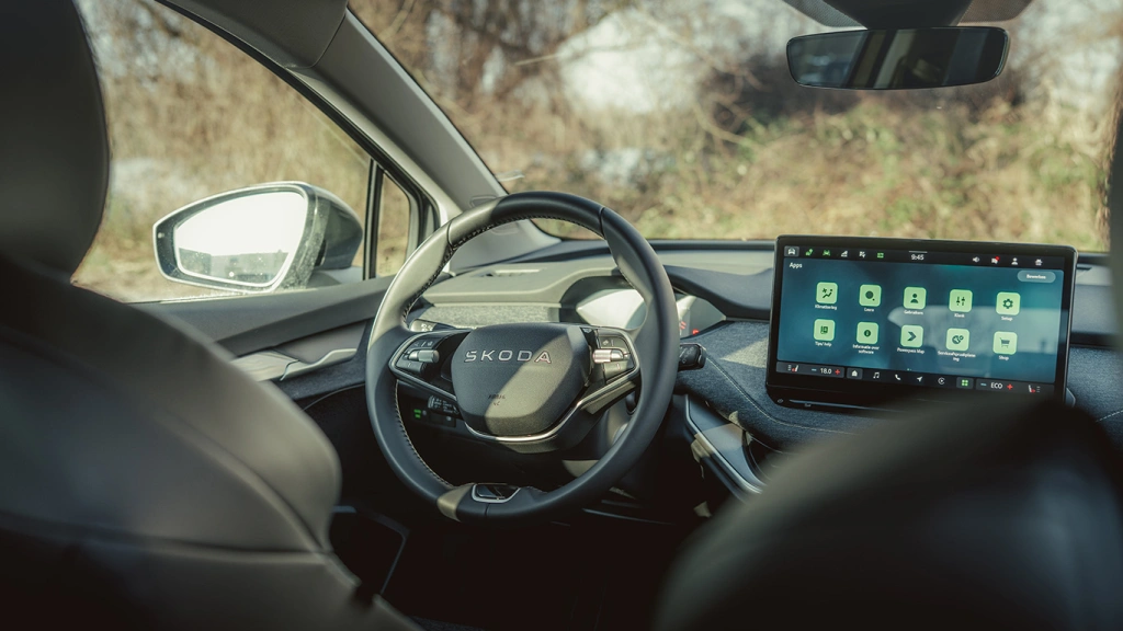 Actieradius tot 374 km (WLTP)* | Snelle laadtijd van minder dan 28 minuten* | Kofferbak van 470 liter, die vergroot kan worden tot 1.580 liter door de achterbank neer te klappen| Adaptive Cruise Control | Lichtmetalen velgen 19" Proteus | Digital cockpit met 5.3 inch display | LED koplampen met LED dagrijverlichting | LED achterlichten | Dagrijverlichting met coming & leaving home functie | Dakrailing mat zwart | Standaard Elroq voor&achter bumper met UDC accenten | Studio interieur design selectie - Stof | Handmatig in hoogte verstelbare voorstoelen | In delen neerklapbare achterbank zonder middenarmsteun