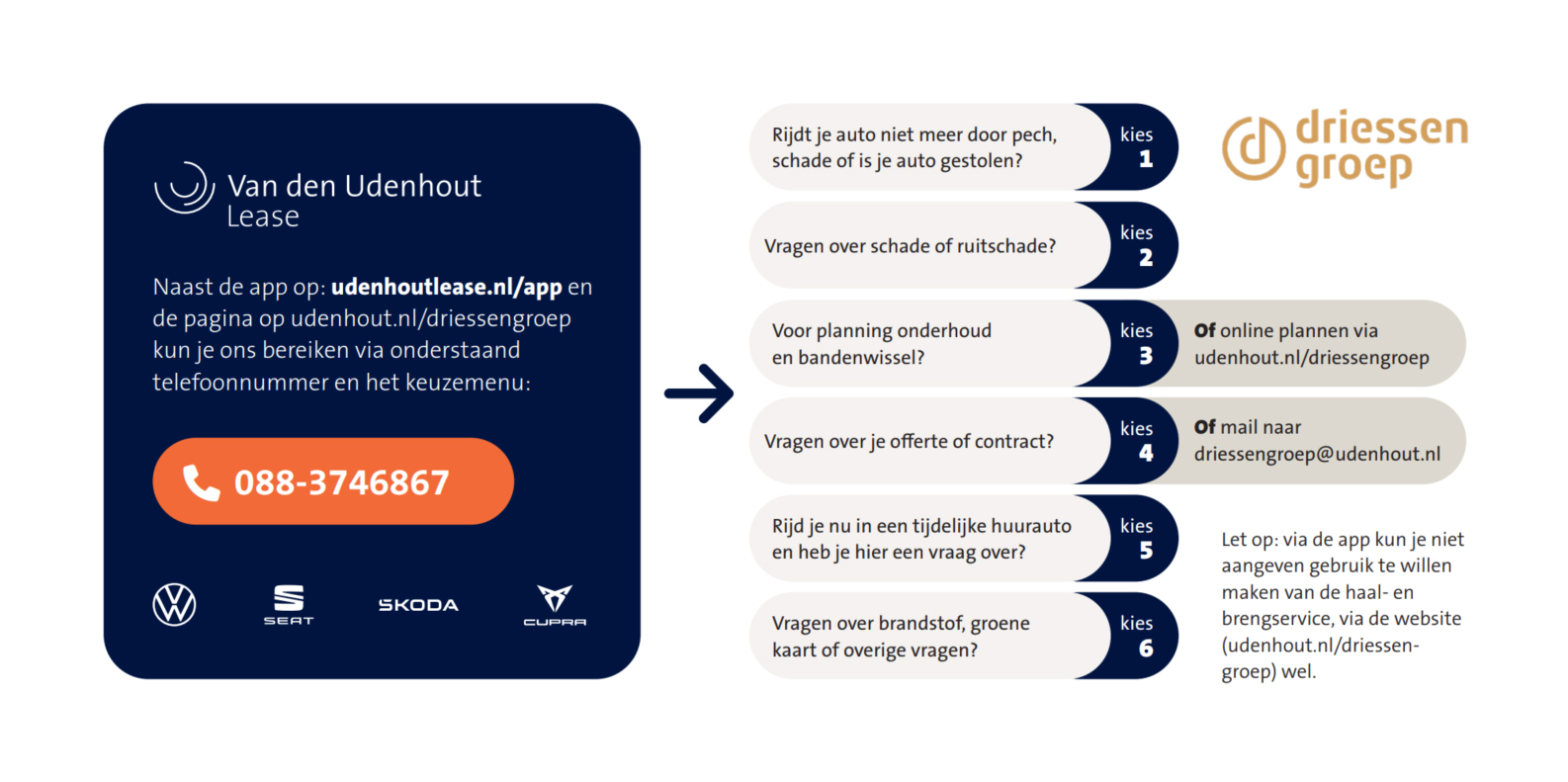 Je ontvangt je contract per post en na ondertekening wordt de auto voor jou in bestelling gezet en door Van den Udenhout aan jou afgeleverd.