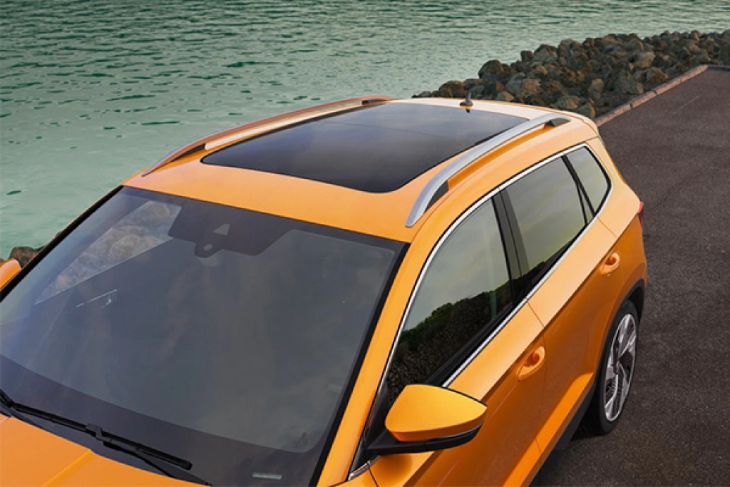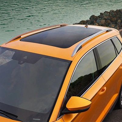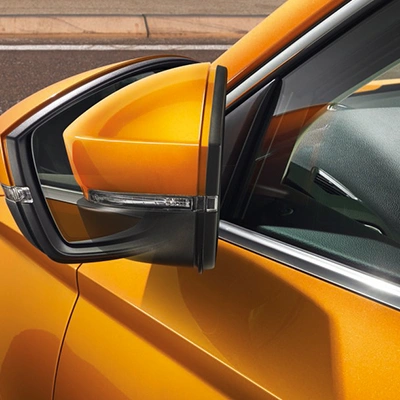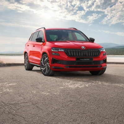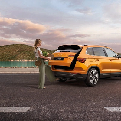 De versie van de succesvolle SUV van Škoda valt direct op met zijn zeshoekige grille, de kenmerkende dagrijverlichting en bumpers. De opvallend vlakke koplampunits zijn standaard voorzien van LED-technologie en kunnen optioneel worden uitgerust met full-LED Matrix-verlichting. Ook de scherp gesneden achterlichten met het kenmerkende C-design maken gebruik van LED-technologie. De grote achterspoiler geeft de Karoq een dynamische look en draagt bij aan een ultieme stroomlijn.
