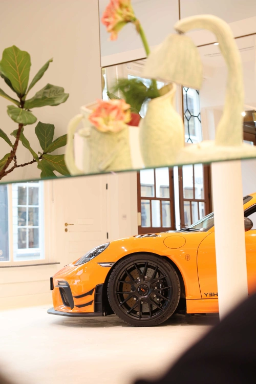 Ontdek onder meer ‘De Tulp’: een uitzonderlijke Porsche 718 Cayman GT4 RS met Manthey Kit, voorzien van karakteristieke oranje accenten. Dit bijzondere model is het resultaat van een samenwerking tussen Porsche Exclusive Manufaktur, Sonderwunsch en Manthey Racing.