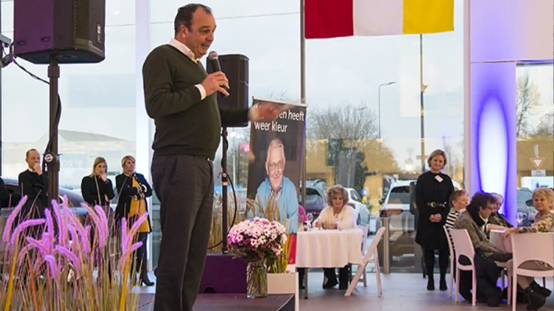 Autobedrijf Van den Udenhout transformeert haar Bossche Volkswagen-showroom dinsdagavond tot een heuse dinerroom - auto's eruit, tafels erin - om honderd eenzame ouderen uit Rosmalen, Vught en 's-Hertogenbosch een bijzondere avond te bezorgen.